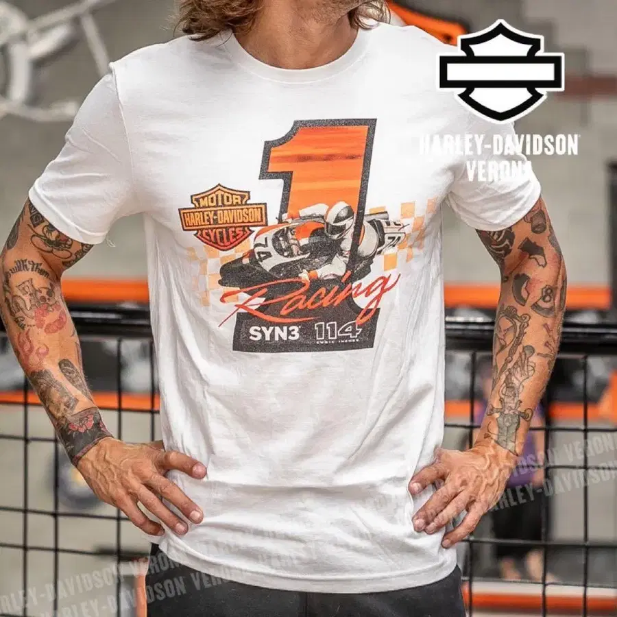 미사용 새상품 Harley-Davidson Racing 티셔츠 화이트