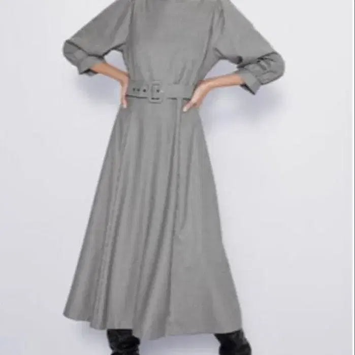 자라 [ L ] V컷 롱 플레어 원피스 그레이