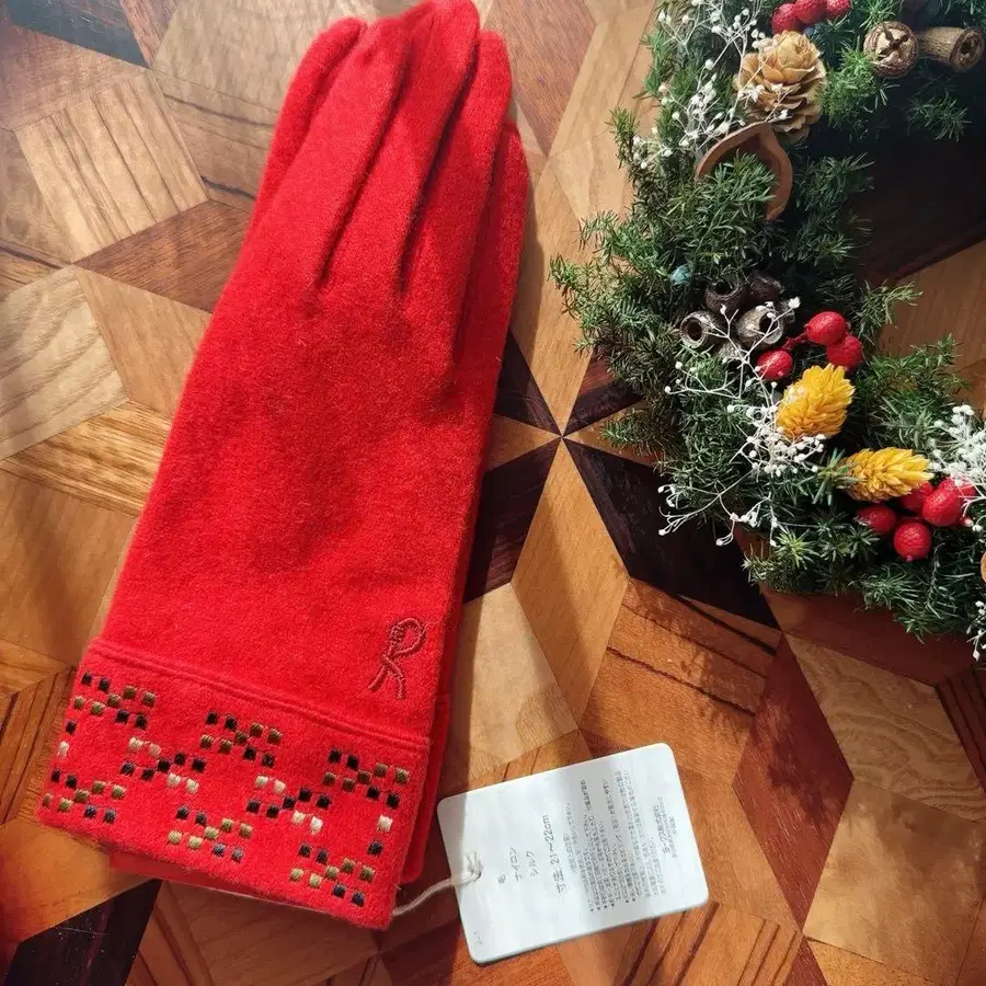 로베르타 디 카메리노 자수 패턴 실크울 장갑 레드