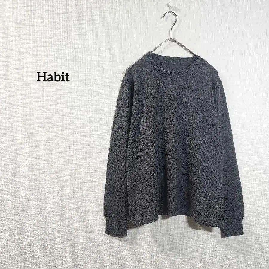 Habit 긴팔 니트 스웨터 다크 그레이 울 100% 여성용