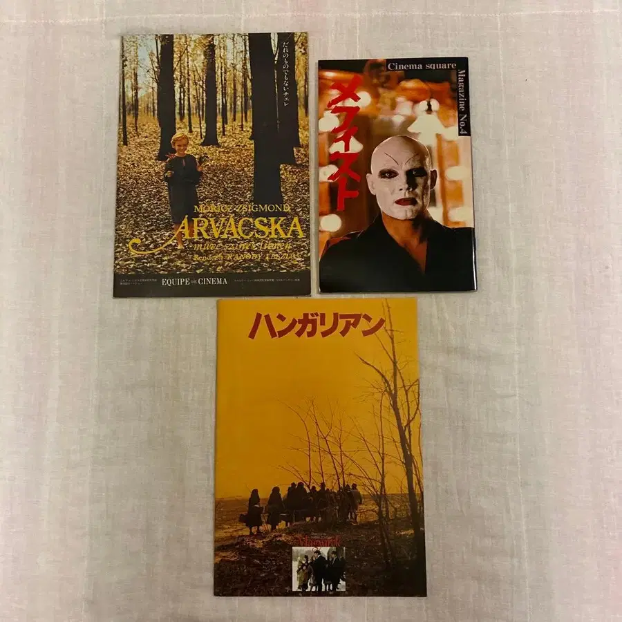 80년대에 공개된 예술성이 높은 영화 팜플렛 3권 세트입니다. 당시 미니 시어터 (시네마 스퀘어 도쿄 등)에서 구매하여 컬렉션으로 소중히 보관했습니다. ■ 세트 내용 1. [누구의 것도 아닌 첼레] (라노디 라 슬로우 감독 / 헝가리 영화) • 매우 레어한 EQUIPE DE CINEMA (에키프 드 시네마) 발행 팜플렛입니다. 2. [메피스토] (이슈트반 사보 감독) • 시네마 스퀘어 도쿄 매거진 No.4 3. [헝가리안] (파브리 졸탄 감독) • 1978년 공개, 당시 오리지널 팜플렛입니다. ■ 상품 상태 • 장기 보관품으로 표지에 노후화에 따른 스크래치나 약간의 그을림은 보이지만, 큰 찢김이나 필기 흔적 없이 연대에 비해 상태는 양호합니다. • 안쪽 페이지는 비교적 깨끗하며, 감상 자료로서 문제없이 즐기실 수 있습니다. ■ 매력 포인트 특히 [누구의 것도 아닌 첼레]는 헝가리 영화의 명작으로 유명하며, 팜플렛이 시장에 나오는 것도 드문 귀한 상품입니다. 당시 미니 시어터 문화를 상징하는 중후한 디자인과 깊이 있는 해설이 매력입니다. 아트 영화를 좋아하시는 분, 컬렉터를 위한 상품으로 어떠신가요? 다만, 중고품이라는 점을 이해해 주시는 분께 부탁드립니다.
