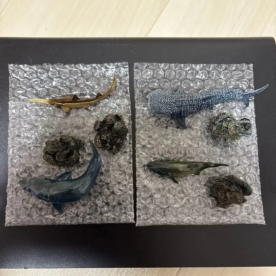 생물대도감 미니 컬렉션 상어 2 귀상어 징베 상어 톱상어 백상아리 햇볕이 들지 않는 곳에서 에어캡에 넣어 보관하고 있습니다. 상태는 사진으로 확인 부탁드립니다. 개별 판매 가능합니다.