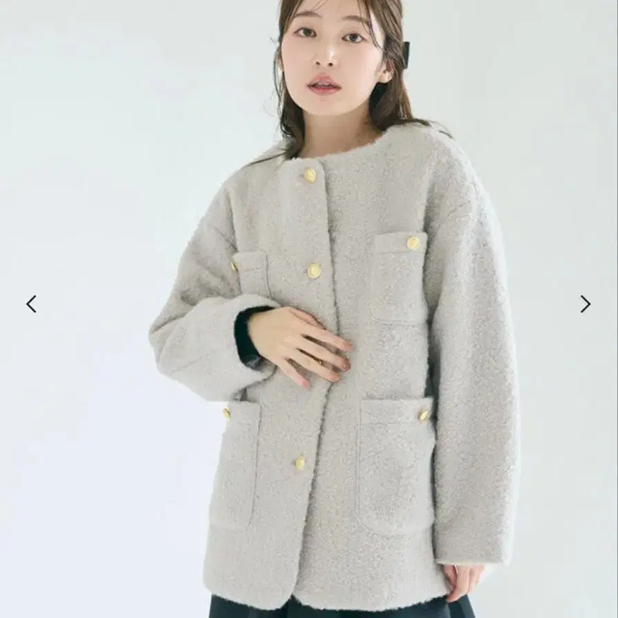 coca 푸들 금장 버튼 노카라 코트 그레이 M