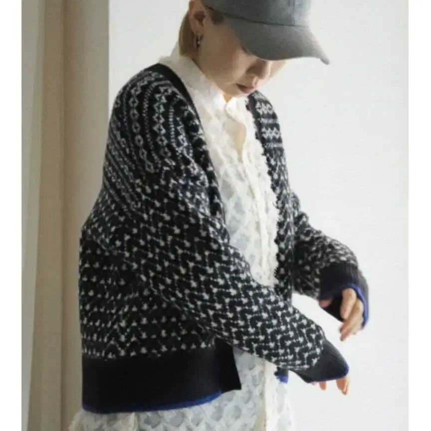 24AW NOMBRE IMPAIR 기하학 패턴 싱글 자카드 가디건