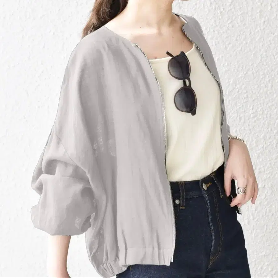 쉽스 레이온 린넨 지퍼 겉옷 그레이 사쿠라이