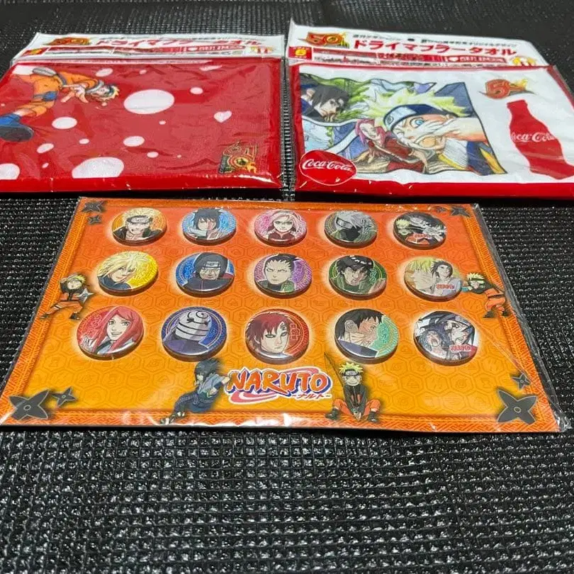 NARUTO 원작 캔뱃지 세트 점프 50주년 기념 드라이 머플러 타월