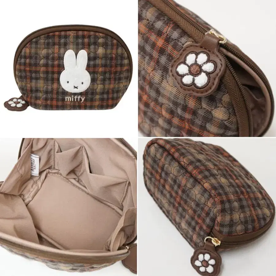 미피 라운드 파우치 퀼팅 체크 COCOART 브라운