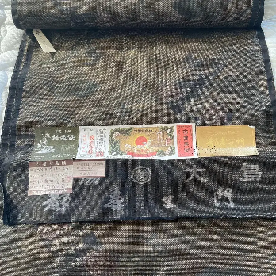 블랙 계열 꽃무늬 기모노 옷감 38호 실크 100% 오시마 명주