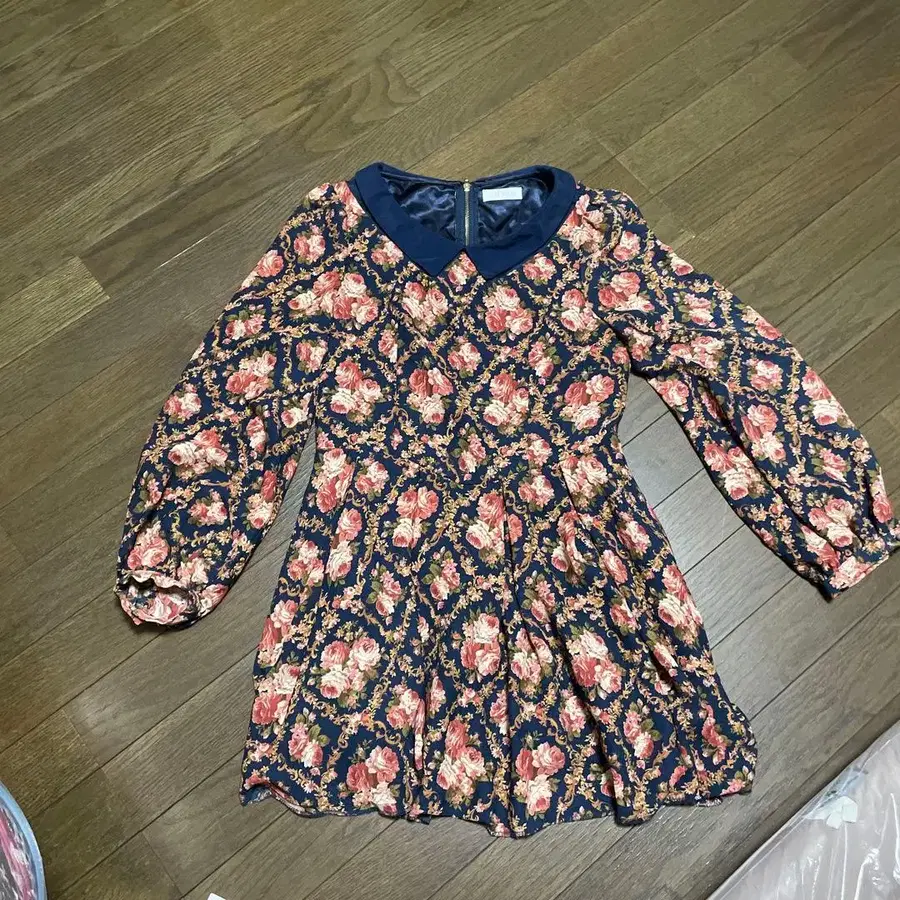 네이비 꽃무늬 카라 원피스 LIZLISA