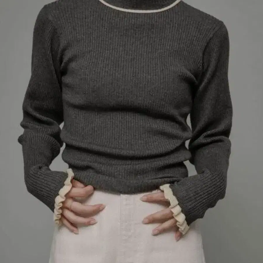 URBAN RESEARCH 소매 프릴 하이넥 풀오버