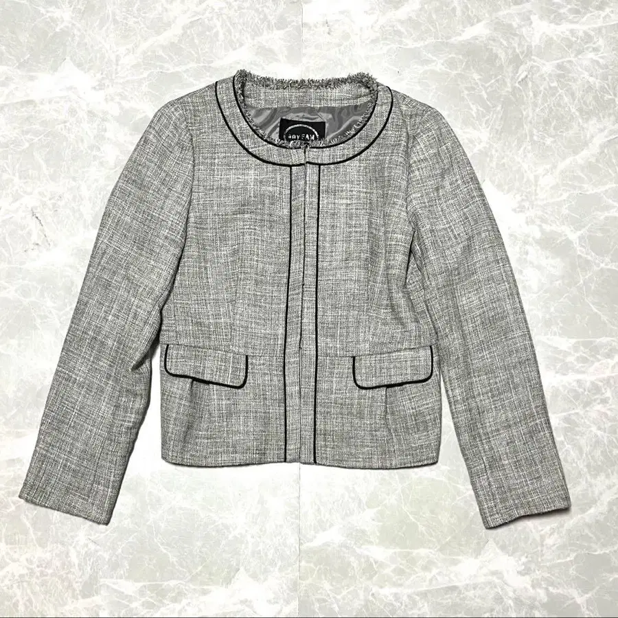 새상품급 anyFAM 트위드 노카라 자켓 그레이 2 프린지