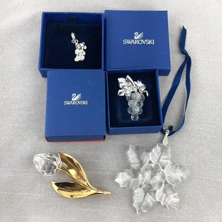 스와로브스키 브로치 키 참 오너먼트 일괄 4점