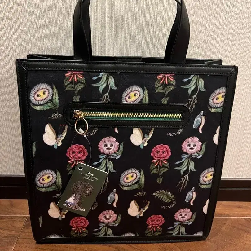 꽃과 나비 핸드백 히구치 유코 앨리스 콜라보 디즈니 검정 블랙