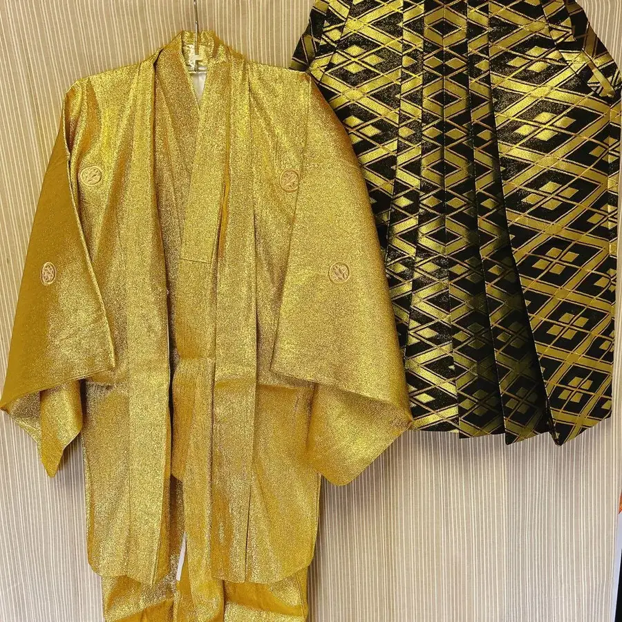 문장 기모노 하카마 성인식 골드 컬러 화려함