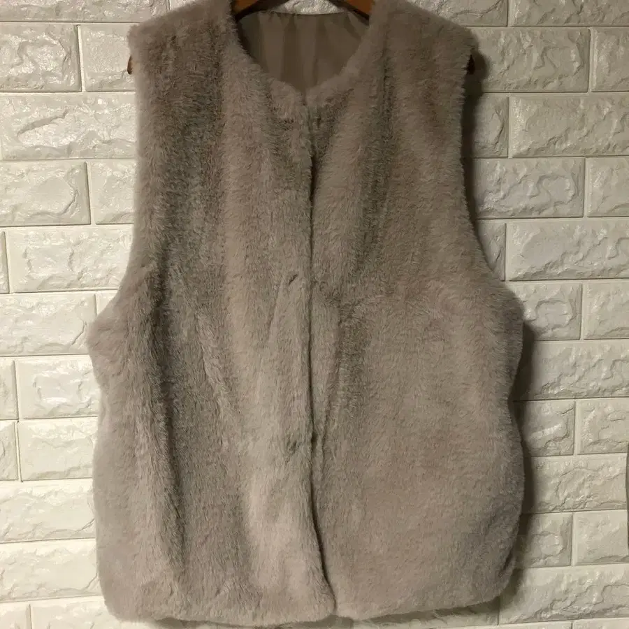 [ 새상품 미사용 ] 베이지 퍼 베스트 노카라