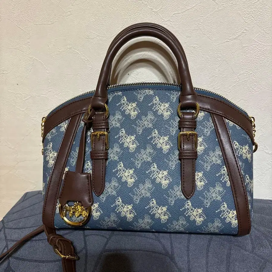 파란색 캔버스 소재의 로고 토트백, 골드 금장 장식 포함. - 색상: 파랑 - 소재: 캔버스 - 디자인: 로고 - 핸들 개수: 2 - 숄더 스트랩: 있음 - 금장 장식 색상: 골드 - 스타일: 핸드백, 숄더백 ◼️ 사이즈 약 27 x 20 x 13cm ◼️ 숄더 벨트 조정 가능 ◼️ 장지갑 들어갑니다. ◼️ 짐을 한 번 시착만 했을 뿐, 사용하지 않았습니다. 자택 보관품입니다.