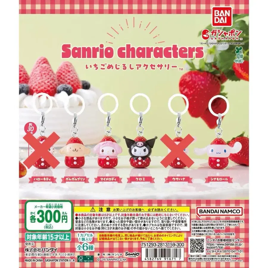 산리오 딸기 메지루시 액세서리 가챠 4종류