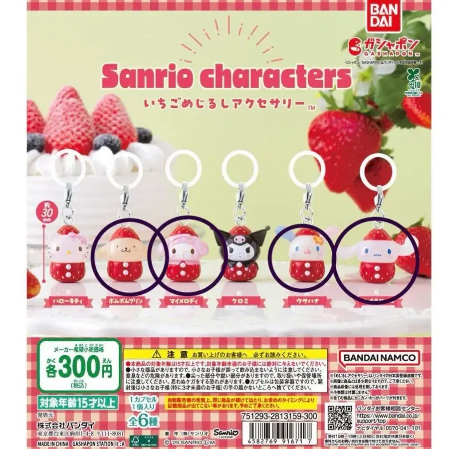[ 당일 발송 ] 산리오 캐릭터즈 딸기 메지루시 액세서리 4개 세트