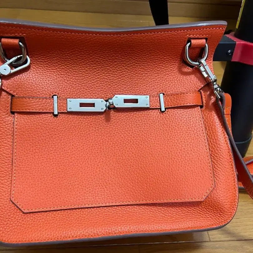 오렌지 가죽 숄더백