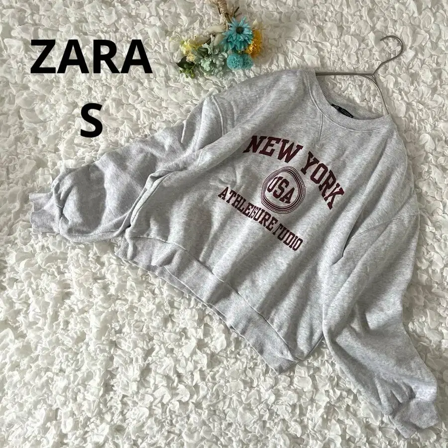 ZARA 자라 영문 로고 맨투맨 크롭 숏 기장 그레이 S