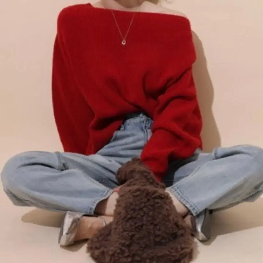 Apuweiser-riche 캐시미어 혼방 오프넥 아쿠아 라메 니트 레드