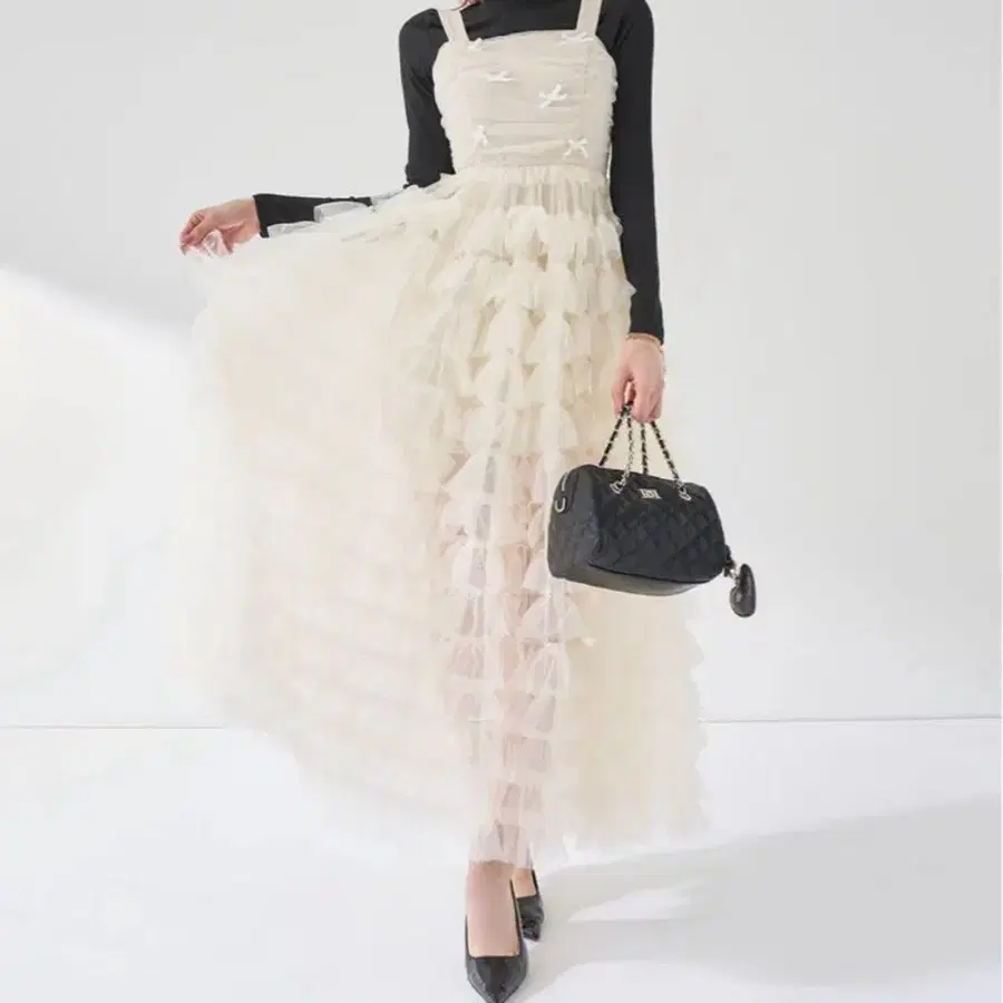 darich 다리치 벨로아 리본 튤 원피스 FS 사이즈 WHT