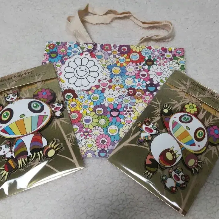 쇼핑백 포함 2종 세트 무라카미 다카시 팬더 러버 키링 카이카이키키