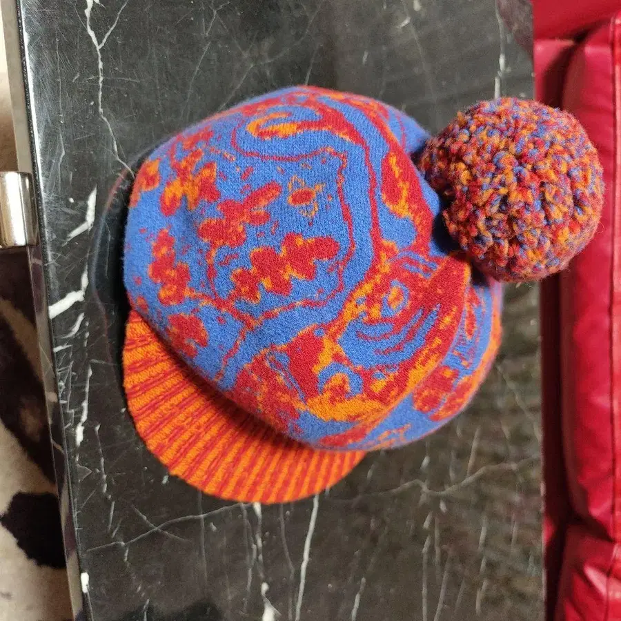비비안 웨스트우드의 폼폼 포함 파랑 오렌지 니트 모자