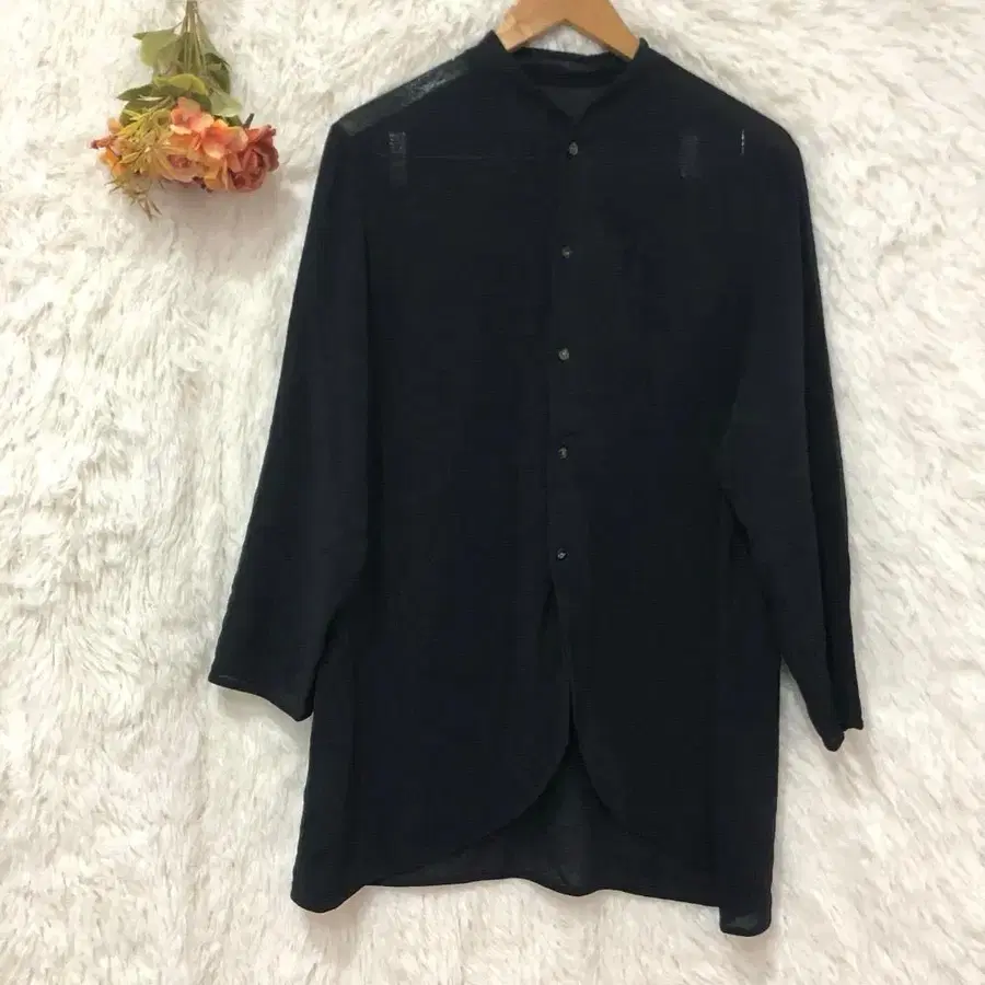 요건 레일 긴팔 셔츠 상의 [ M ] 프론트 오픈 비침 루즈핏 블랙