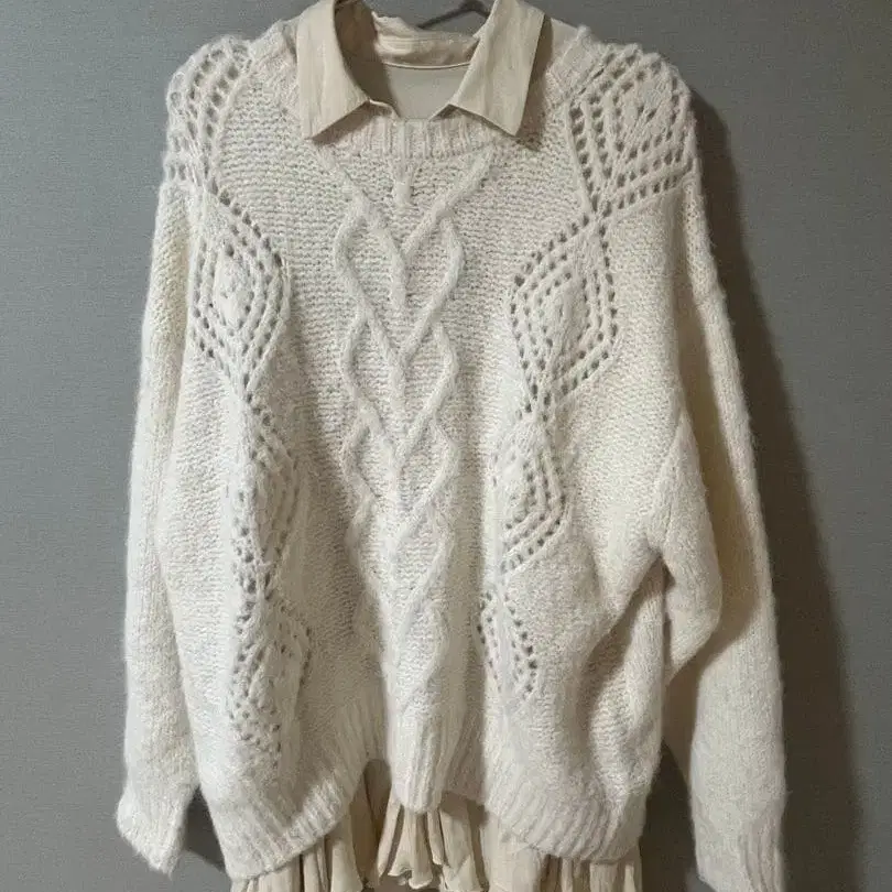코코딜 케이블 니트 x 페플럼 셔츠 미니 원피스