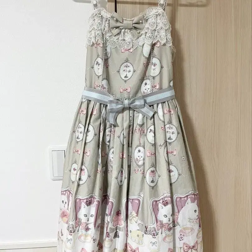 Angelic Pretty 고양이의 다회 오버롤 스커트 세트 그레이