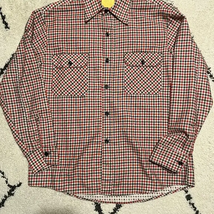 Sears 빨간색과 블랙 체크 무늬 플란넬 셔츠 70s