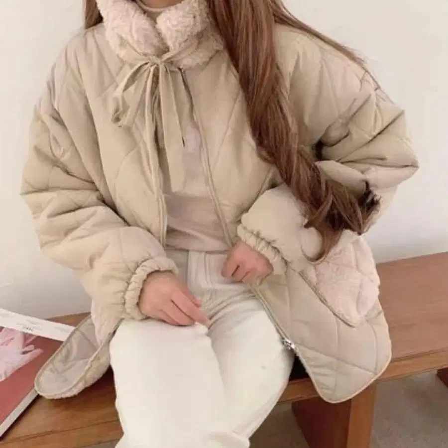 한국 퀼팅 리본 보아 자켓