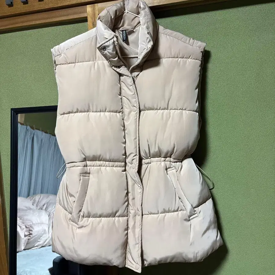 H&M 베이지 퀼팅 다운 베스트
