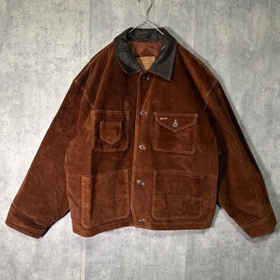 레어 스웨이드 천연 가죽 가죽 자켓 트래커 웨스턴 헤비웨이트
