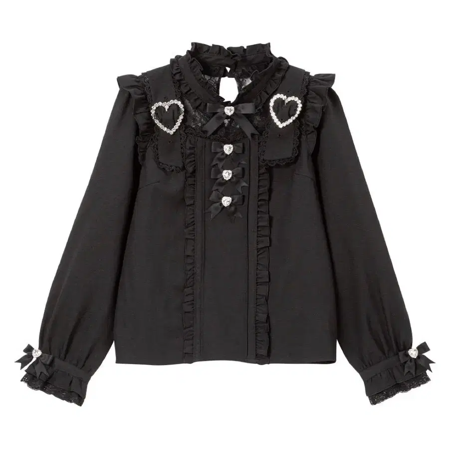 디어마이러브 하트 벨트 초커 비쥬 블라우스 블랙