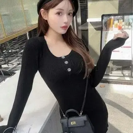[ 새상품 ] Rady 비쥬 버튼 니트 원피스 완판템 블랙 M