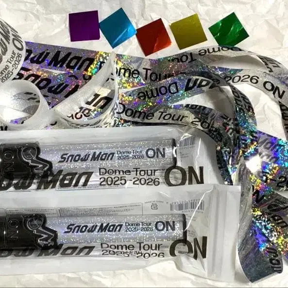 SnowMan Dome Tour ON 2025-2026 응원봉과 낙하물 세트입니다. 응원봉 ✖️ 2개 ▼ 낙하물 은색 테이프 ✖️ 4개 음표 ✖️ 2개 반짝이 색종이 ✖️ 5색 ✔️ 부록 응원봉은 2회 공연에서 이용 후 물티슈로 닦았습니다. 응원봉의 절연체는 포함되지 않습니다. 은색 테이프는 낙하물이므로 스크래치, 접힘 등이 있습니다. 말아서 마스킹 테이프로 고정합니다. 컬러풀 은색 테이프는 스크래치, 접힘 등이 있으며, 잘 끊어지기 때문에 증정품 정도로 생각해주세요. ✔️ 발송 쿠션재로 감싸, 내용물이 보이지 않는 비닐 소재로 넣어 (종이상자 포장이 아닙니다) 익명 배송으로 가나가와 또는 도쿄에서 보내드립니다. 낙하로 인한 스크래치, 접힘 등에 동의하시는 분, 또한 반품 교환 불가에 이해하시는 분만 검토 부탁드립니다. 잘 부탁드립니다.