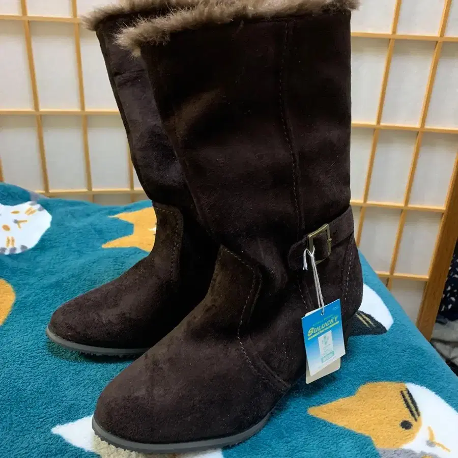 브라운 스웨이드 롱 부츠 퍼 포함