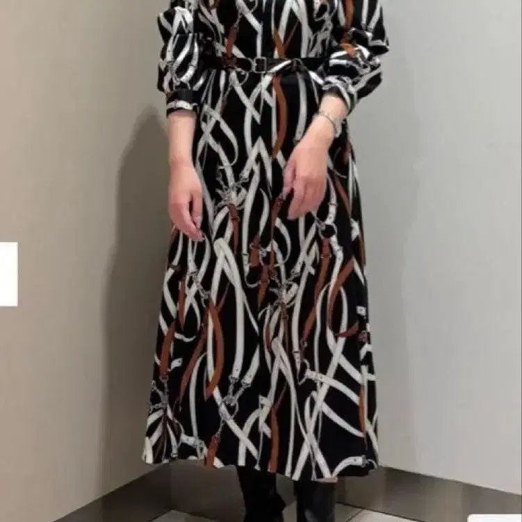 그레이스 콘티넨탈 벨트 프린트 셔츠 드레스 블랙 36