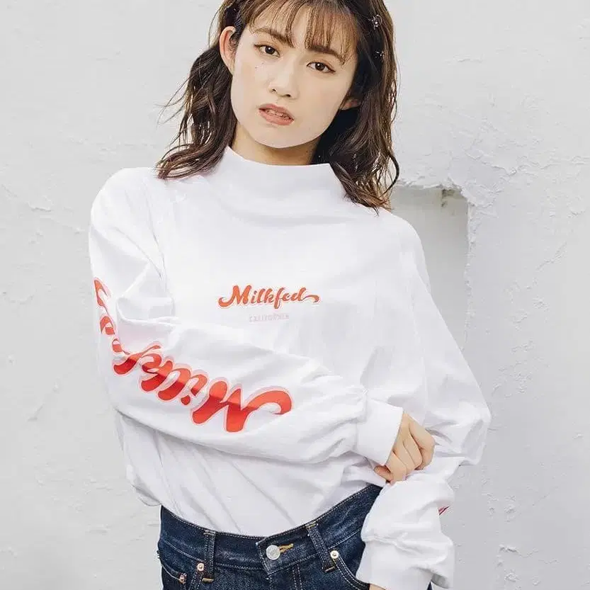 밀크페도 SLEEVE LOGO 하이넥 탑