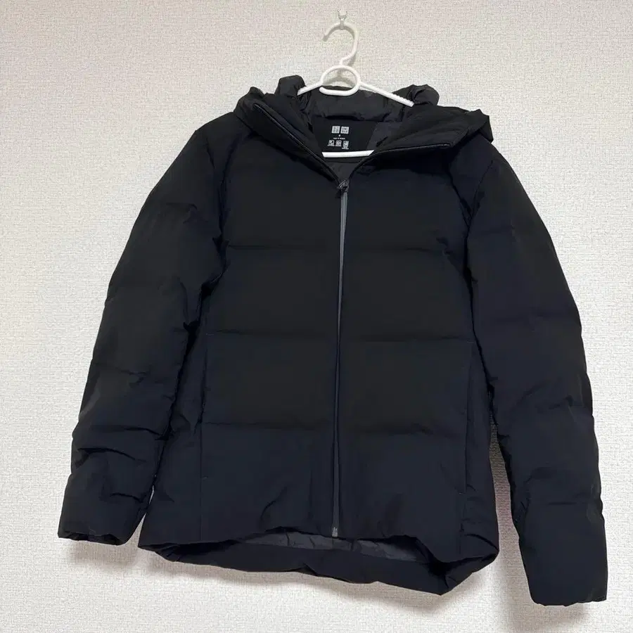 유니클로 심리스 다운 후드티 블랙 M 사이즈