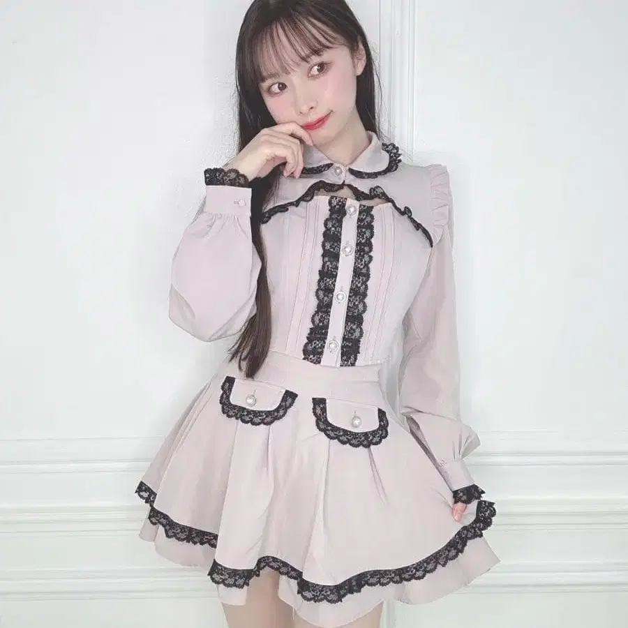 Honey Cinnamon 레이스 프릴 셋업 핑크
