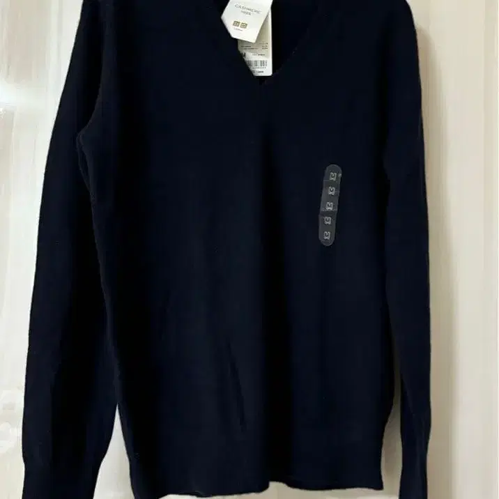 [택 포함 새상품] 유니클로 캐시미어 100% 스웨터 V넥 네이비
