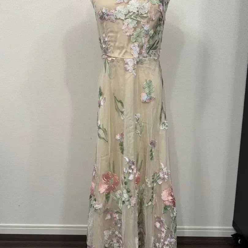 꽃무늬 자수 슬리브리스 맥시 드레스
