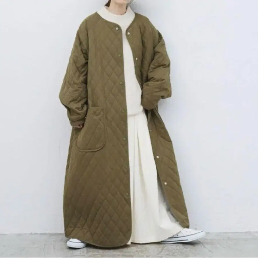 오버 사이즈로 니트도 편하게 입을 수 있는 퀼팅 소재 코트입니다.
