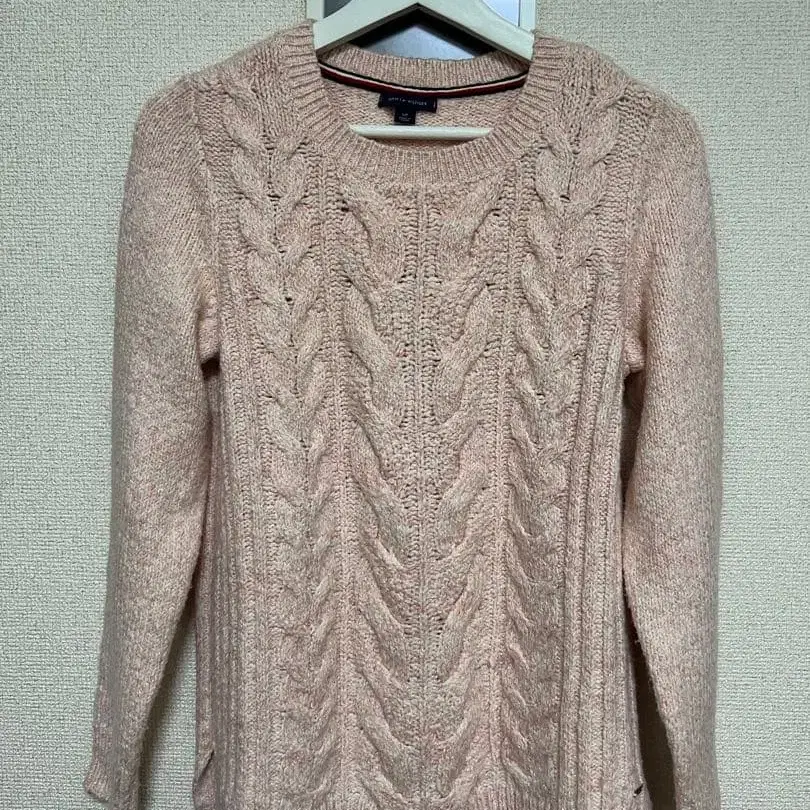 새상품급 TOMMY HILFIGER 핑크 케이블 니트 스웨터