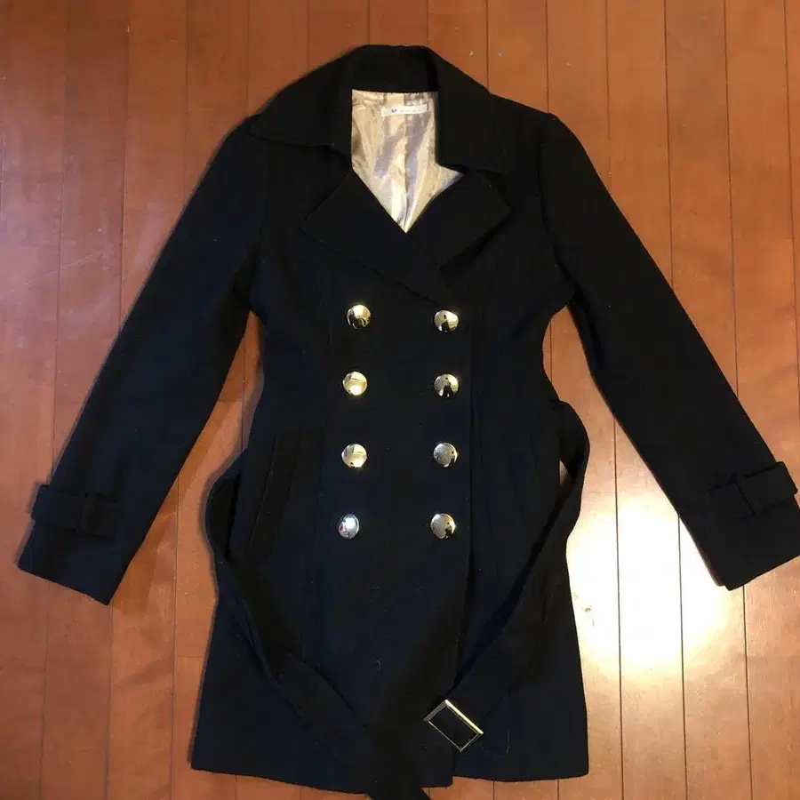 M.deux 블랙 울 피코트 탈부착 가능 벨트 포함