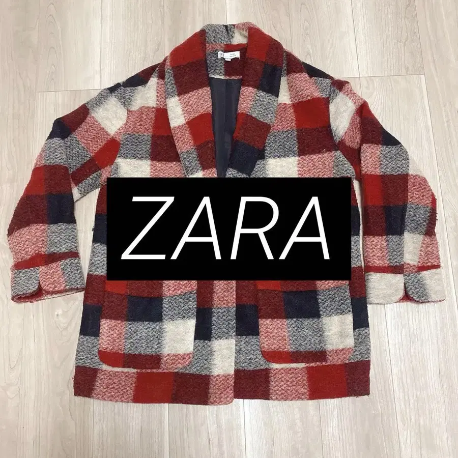 자라 블록 체크 패턴 체스터 코트 화이트 블랙 레드