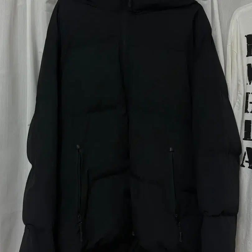 GU 블랙 후드 부착 다운 자켓